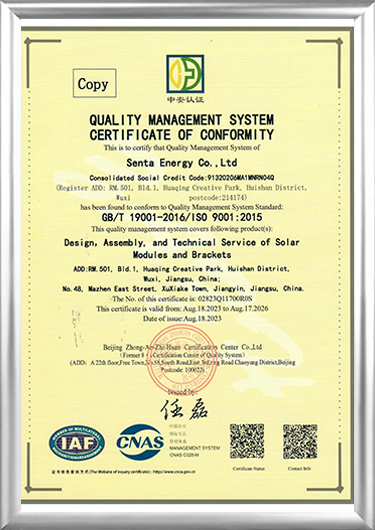 Itinatag noong 2016, ang Senta Energy Co., Ltd., na matatagpuan sa Wuxi, Jiangsu, ay isang high-tech na enterprise na pangunahing nakikibahagi sa bagong energy photovoltaic power generation at energy storage business, bagong gusali ng mga prefabricated na bahay at bagong agrikultural na distributed planting business. Pinagsasama ang independiyenteng pananaliksik at pagpapaunlad, produksyon, pagbebenta, at serbisyo, nakatuon kami sa pagbibigay sa mga global na user ng pangkalahatang solusyon para sa buong ikot ng buhay na intelligent na enerhiya, matatalinong gusali, at matalinong pagtatanim.
