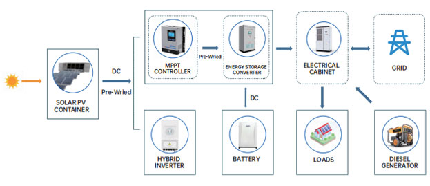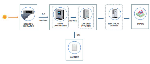 Ang direktang kasalukuyang nabuo ng solar module ay na-convert sa alternating current ng inverter, na pagkatapos ay ibinibigay sa load at konektado sa grid. Sa ganitong paraan, habang natutugunan ang kargada ng sambahayan, ang sobrang kuryente ay maaari ding ibenta sa grid.